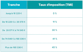 Cette baisse d’impôt est proportionnelle à la tranche marginale d’imposition (TMI) du contribuable. Cette TMI varie selon le niveau de revenus du foyer (revenu imposable) et sa composition (parts de quotient familial). En 2022, les TMI sont les suivantes :
